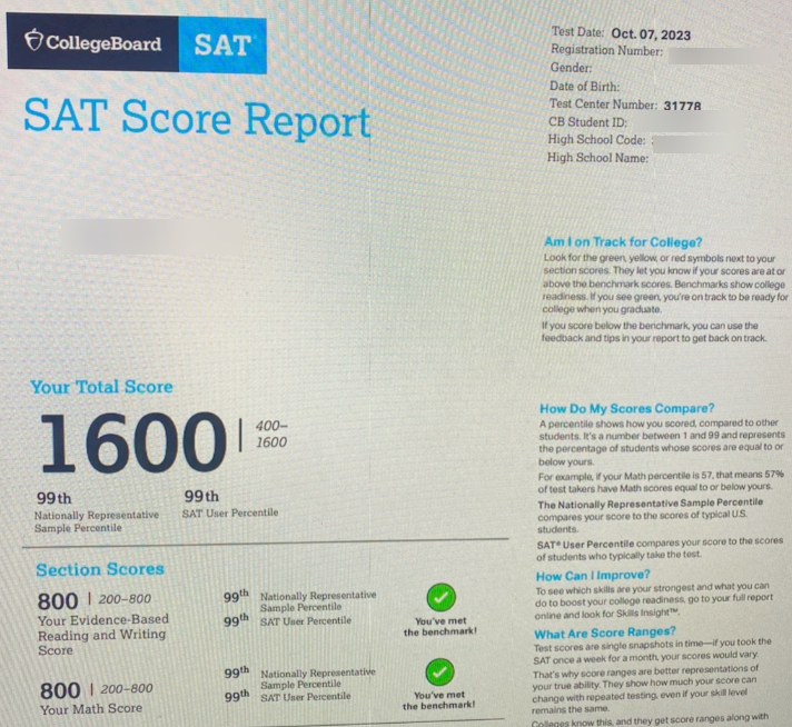2022년, 2023년 Paper SAT 만점 성적표